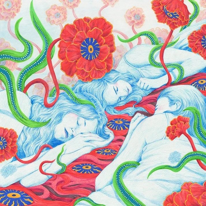Drawing inspiration from traditional art and dark visual culture, she creates powerful illustrations for editorial projects, film posters, and art exhibitions.